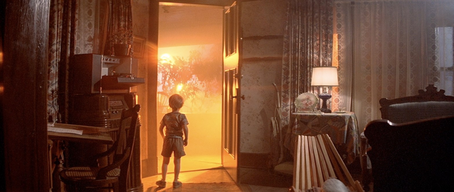 In 1991, Spielberg was asked to provide an image from one of his films that typified his visual style. Spielberg chose the shot in Close Encounters where little Barry stands in the doorway between his home and that “beautiful but awful” outer light.